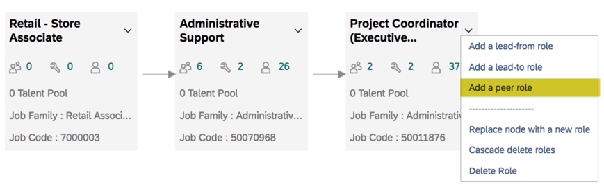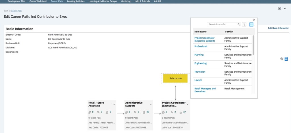 Select a role to use as the starting point of the career path. Once selected, the role is the first node of the career path.