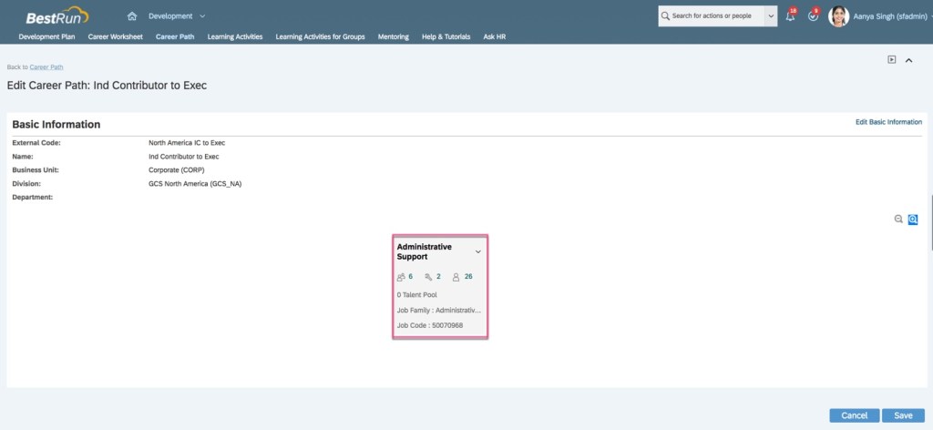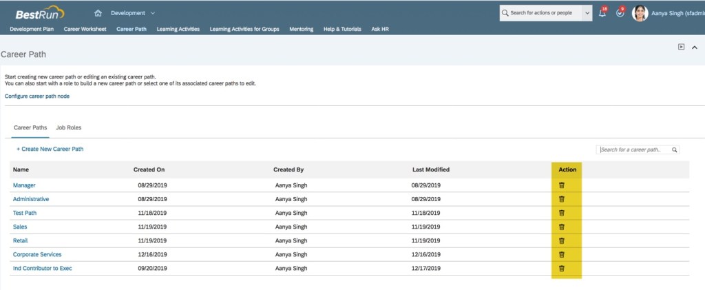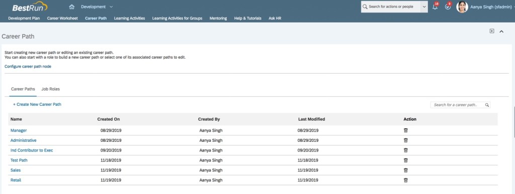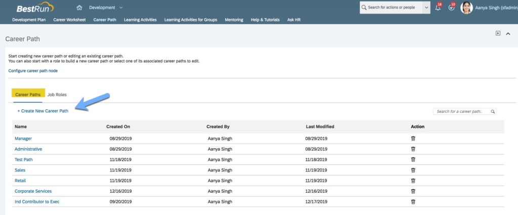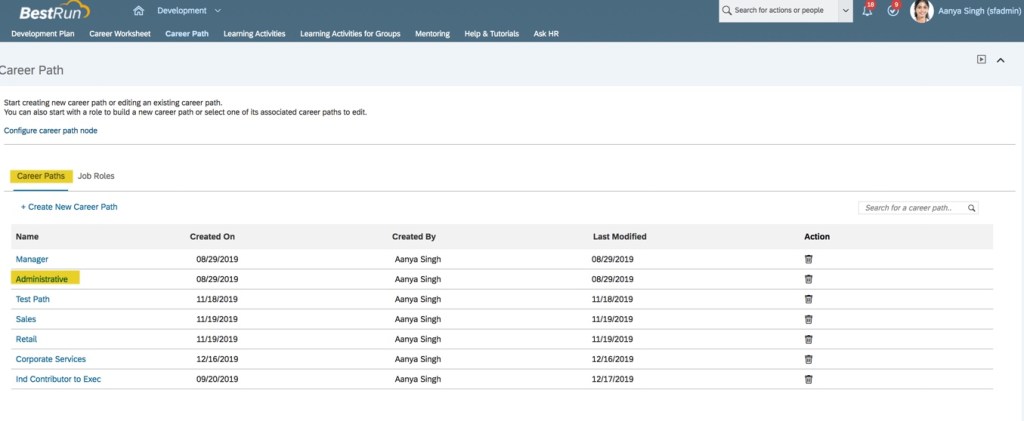 Once permisssioned, the admin would see an additional tab within Development called Career Path. It is here where the paths are managed.