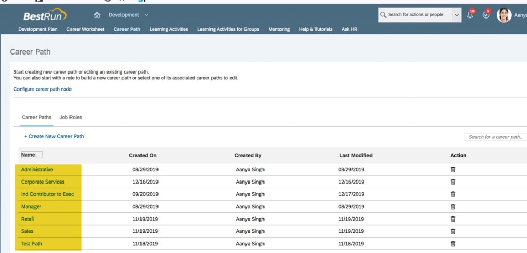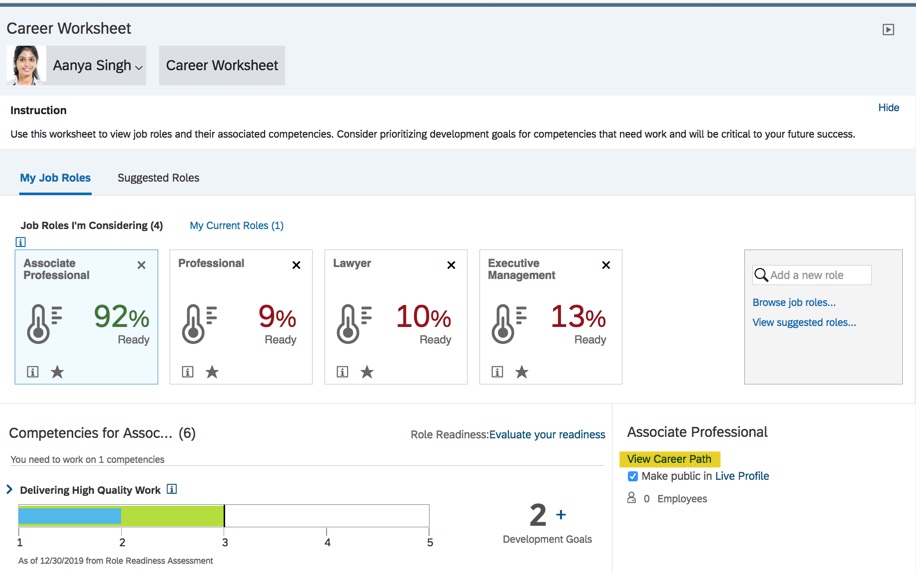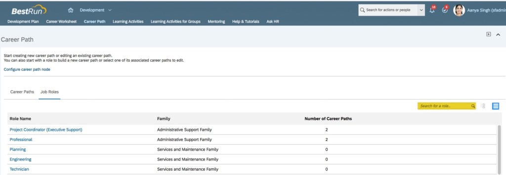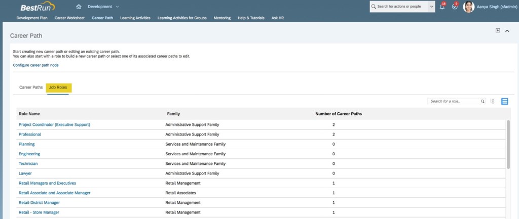 There are two tabs within the Career Path page: Career Paths and Job Roles.
