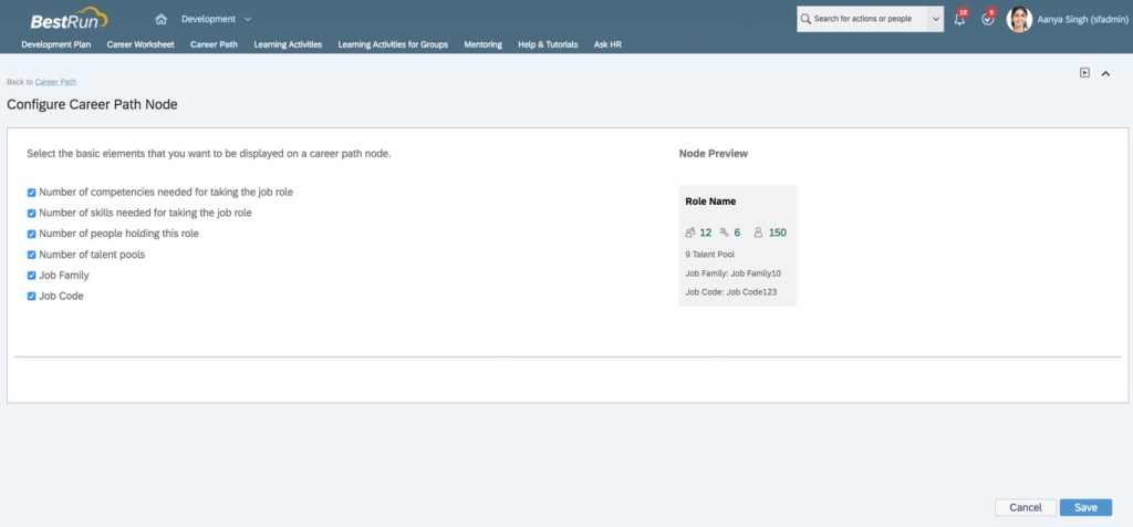 Multiple career paths may be created and it is possible to associate them with a specific role and also limit employee’s access to the career paths based on pre-determined criteria.