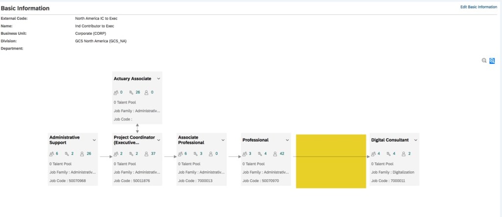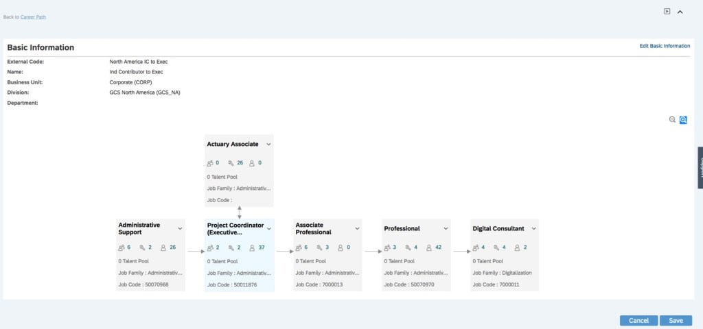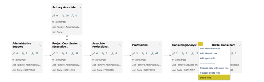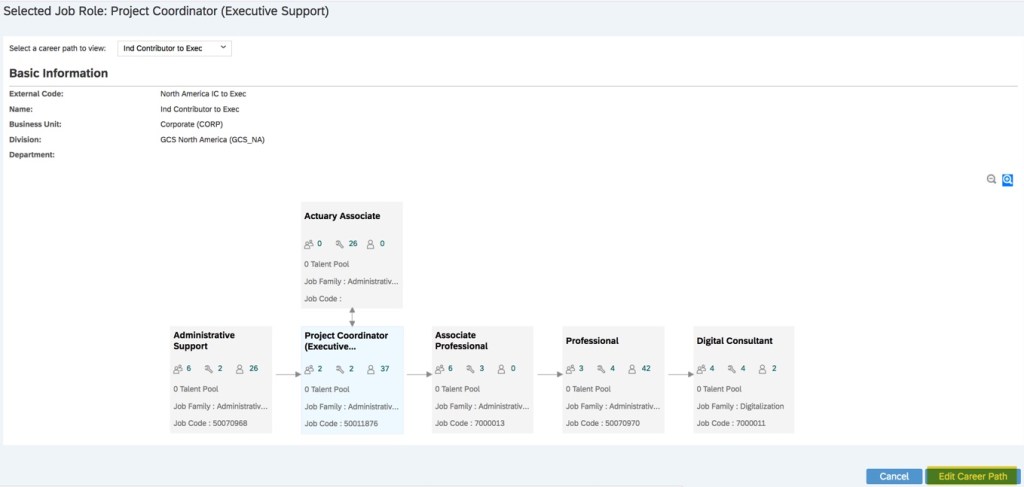 This view is used to see all the roles within a Career Path. Clicking on a node will display the role details.