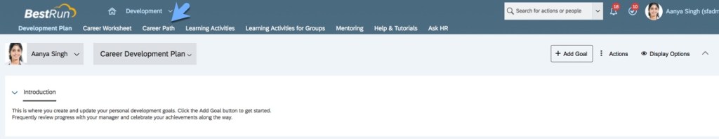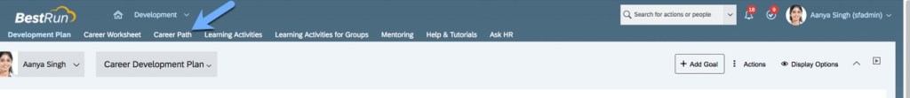 After Career Path administration access has been granted, the admin would see an additional tab within the Development module. It is here where the Career Paths are configured for the instance.