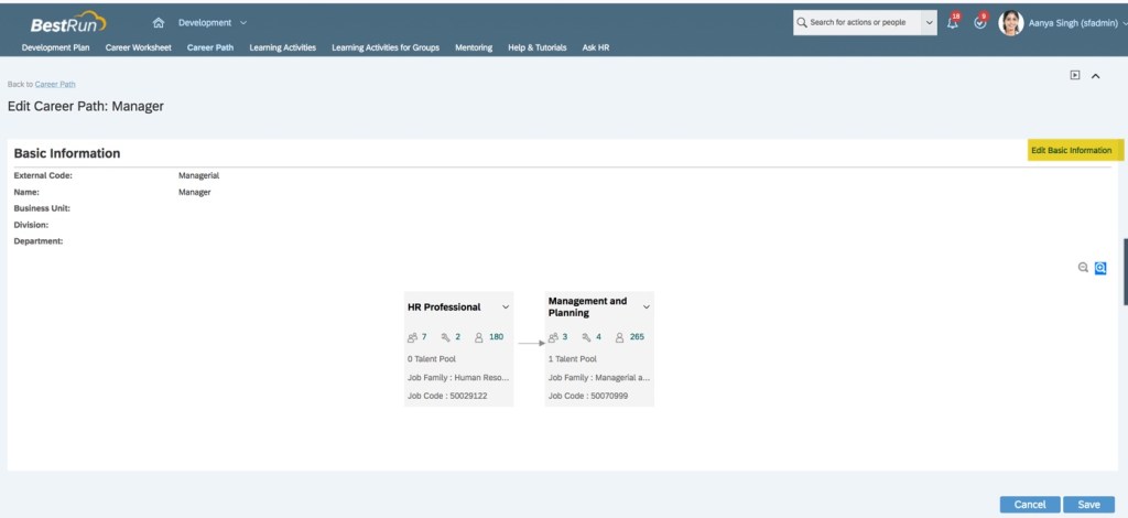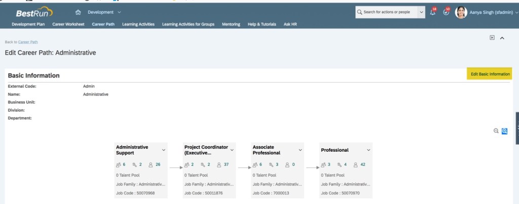 Within any career path, it is possible to update the path’s basic information.To update the Career Path’s name or details, click Edit Basic Information.