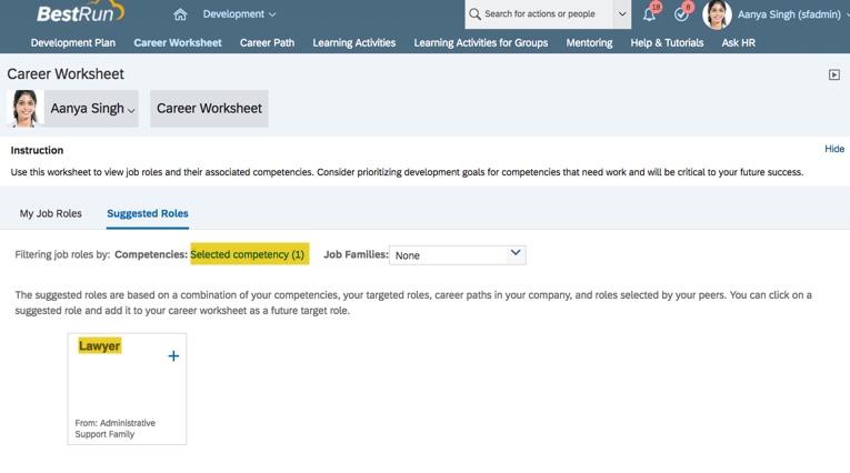 This filter will cause the suggested roles to display only the roles that contain the selected competency.