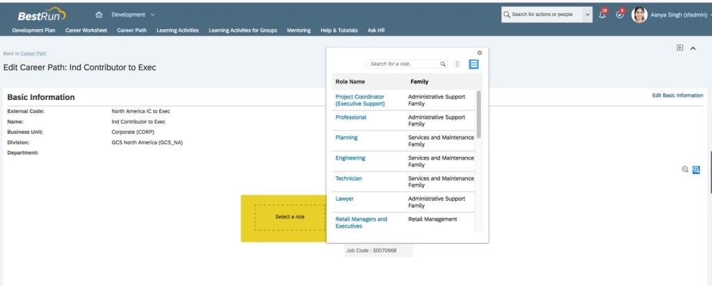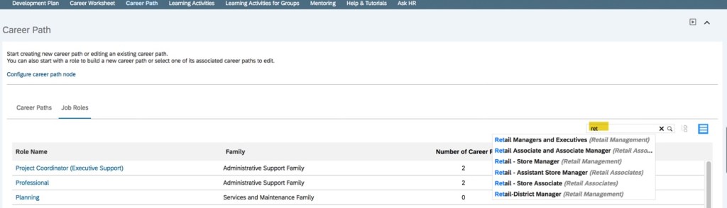 Now that we have reviewed the Career Paths tab, let’s look at the Job Roles tab.