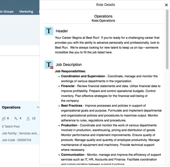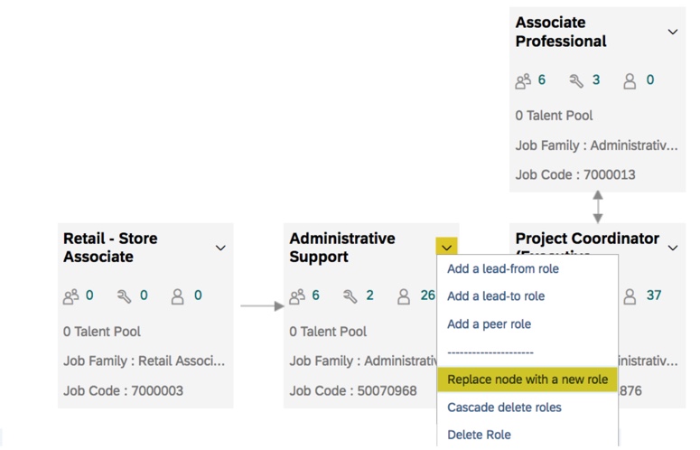 Click anywhere within the node to see the job role details. This is actually a view of the job profile.
