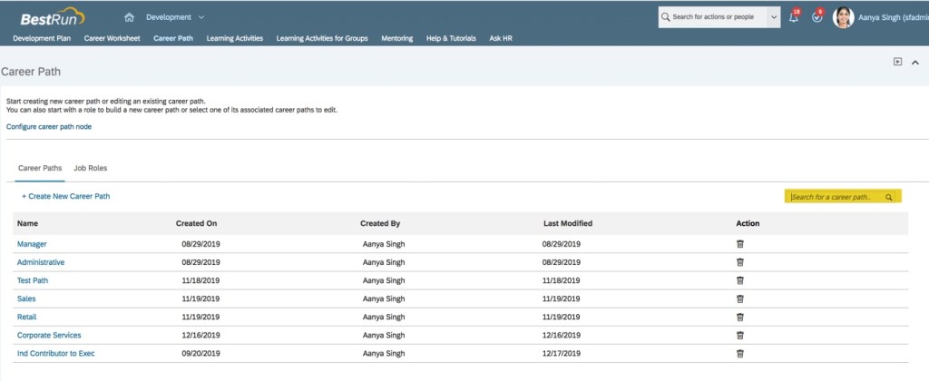 On the Career Paths tab, there is also a search optionI. f your organization has a large number of career paths, you can avoid scrolling through pages by doing a search by path name.