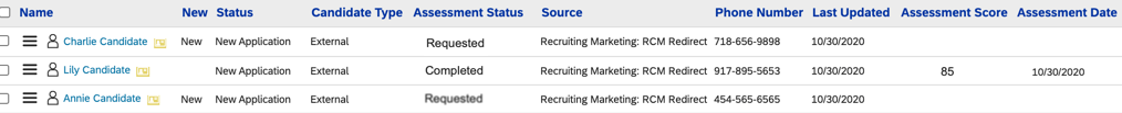 Even prior to COVID-19, we’ve been helping customers sift through 1,000s of candidates with automated assessments. With more unemployed people seeking jobs, there is increasing pressure to comb through even more candidates per posting. Automated assessments can take the form of surveys or even Artificial Intelligence. For example, we’ve help customers automatically send out 3rd party survey assessments immediately upon applying or at other stages in the recruiting process. From there, the candidate can either be automatically disqualified or be sorted into different statuses and/or given a rating to easily compare against others. Assessment status and scores can also be integrated directly into the SuccessFactors user interfac as shown in the screenshot above and even sorted in descending order for maximum visual efficiency for recruiters. We’ve also worked with cutting edge vendors to give candidate similar ratings based on resume and candidate profile content using AI technology.