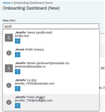 - New Hire Search – allows onboarding users to type a name to search through new hires