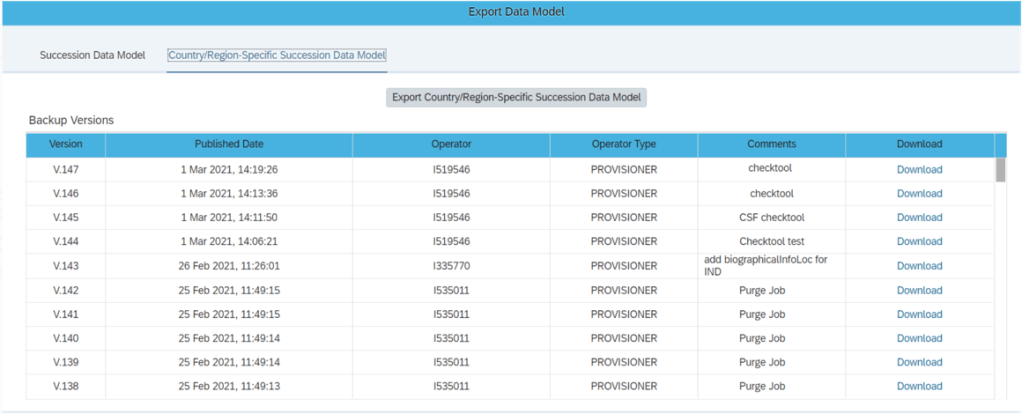 Admins can also now export the Succession Data Model and Country/Region_specific Succession Data models from Admin Center (previously only partners could do this in provisioning). Simply give the new permission “Export Succession Data Model or Export Country-Specific Succession Data Model” permission and you’ll get access to the screen shown below: