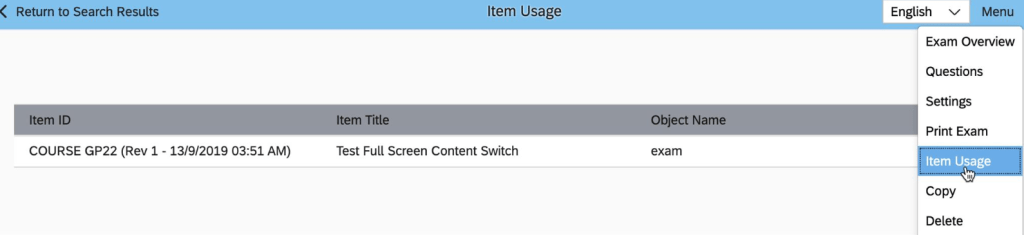 Added the Item Usage menu item on the Assessments page so you can see the items associated with an assessment.