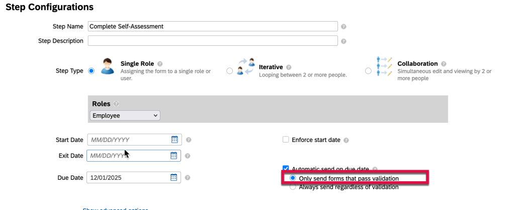 Another issue that can arise is when a form is set to auto route to a manager step and the manager role is not populated for an employee’s form. The manager step will be skipped. The form cannot route to a step with any empty role.