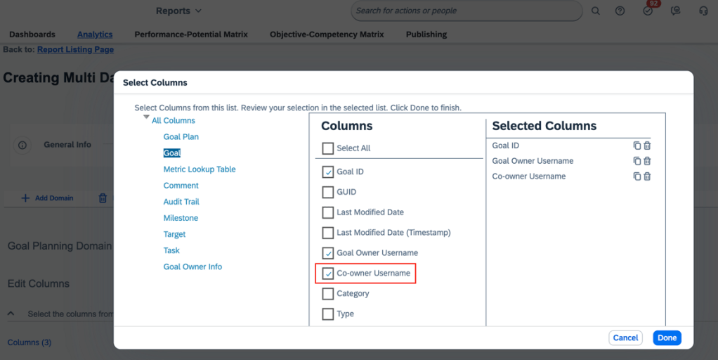 - Set up custom reports to analyze performance trends across the organization. SuccessFactors provides pre-built reports for evaluating employee performance, ratings, and competencies. This enables you to summarize key findings to leadership.
