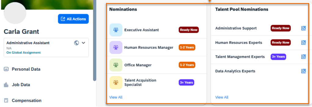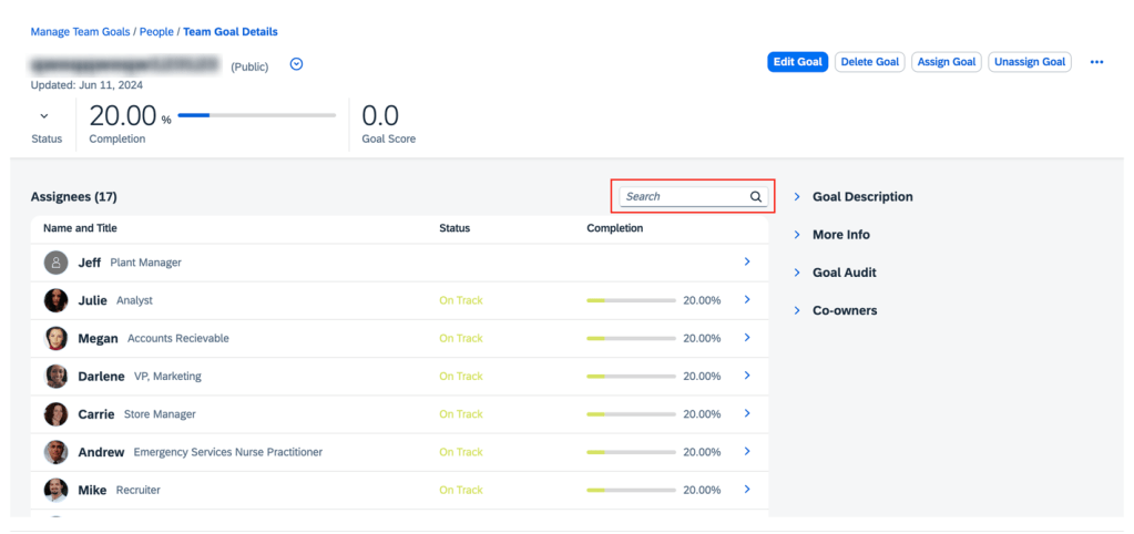 - Customize dashboards and analytics to review performance ratings, goal progress, and development plans at a department or company level.