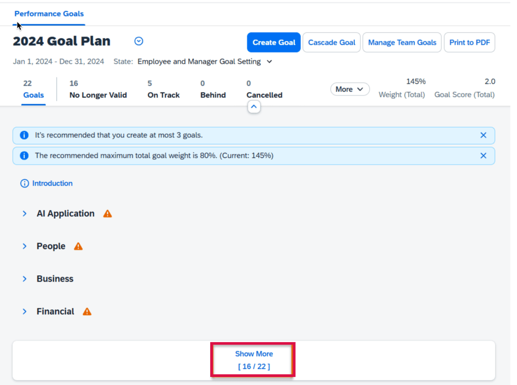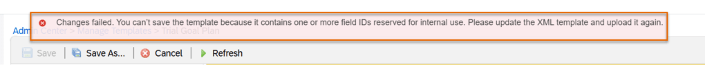 - If the template is copied from the prior year, ensure that the correct goal plan is linked to the template and any references to the prior plan year are updated to the new plan year