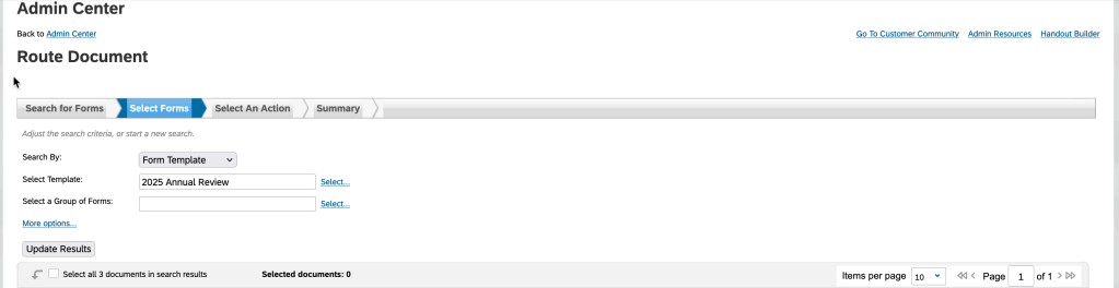 - Track timely completion of reviews. You can create an ad hoc report to check what steps forms are in. If a step due date is approaching and forms are not moving, it can be a signal to send out communication to remind users to work on their forms.