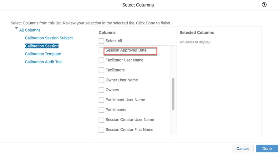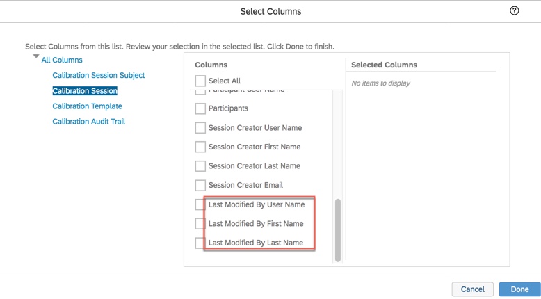 The final Calibration enhancement involves ad hoc and SAC reporting. There are new fields available to report on when generating a report for a finalized session. The session approval date along with the name of the last user to modify the session are now available. Most likely the last user to modify the session was the approver. The last modified user fields include “Modified By User Name”, “Last Modified by First Name”, and “Last Modified by Last Name”.