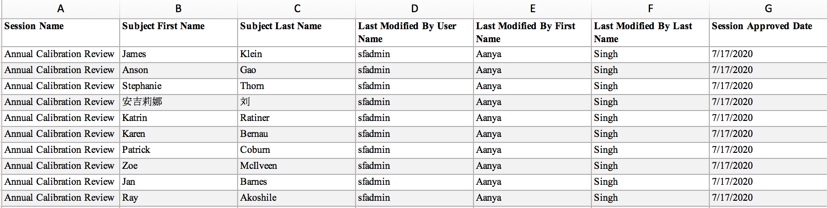Here all rating modifications made to subjects within that session are listed. The Old Rating and New Rating columns display the rating label and also includes the corresponding rating value. The user who made the change as well as the modify date/time are noted as well.