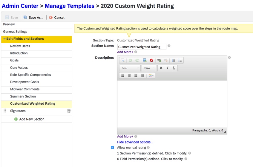 Customized Weighted Rating Section of PM Template
