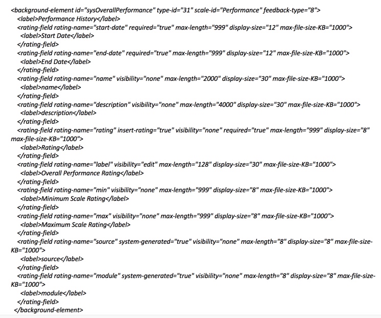 A code segment seen below displays an example of the overall performance rating background element.