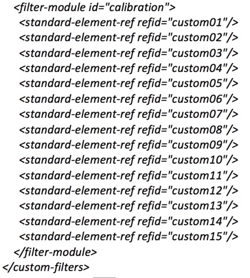 Include the custom elements that you wish to use as calibration filters. This should be placed after the default filter as shown below:
