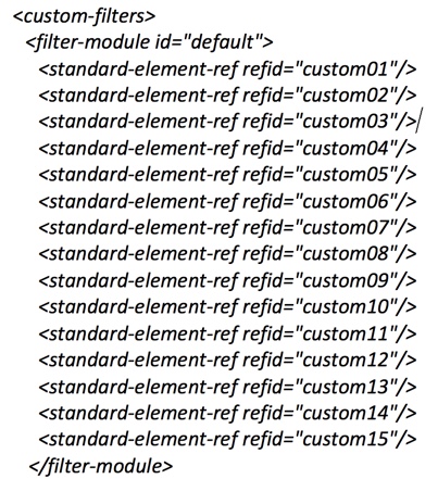 These custom fields may also be used in as filters in calibration. Module specific filters are defined within <custom-filters>. Identify the calibration module filters by adding this tag: