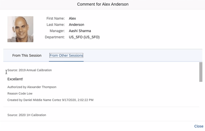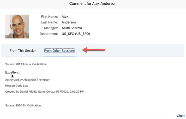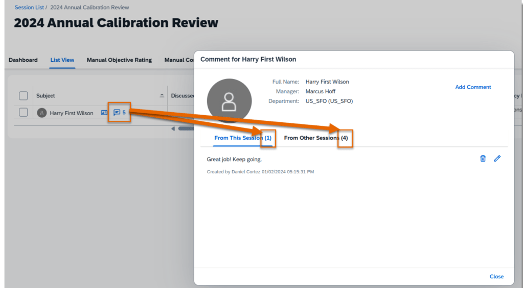 In the subject list of a calibration session, the comment icon next to each subject now shows a total count of comments from the current session and other sessions that are based on the same template. When you viewing the comment dialog box,there are separate counts and comments on the From This Session and From Other Sessions tabs.