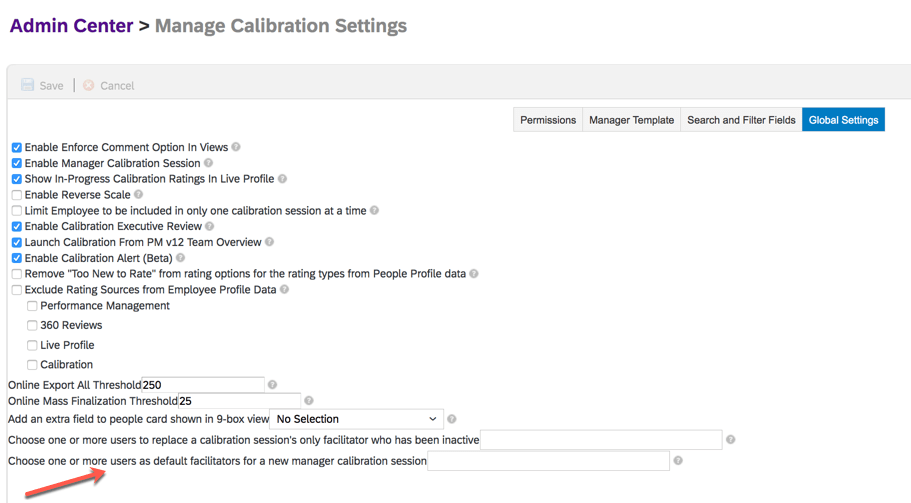 A new setting, Exclude Contingent Workers from Session Creation, is available under Admin Center>Manage Calibration Settings>Global Settings.