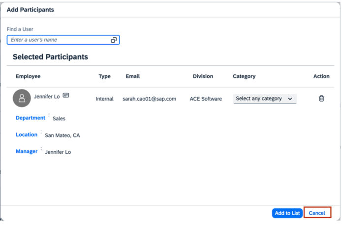 Cancel button placement updated for 360 Reviews