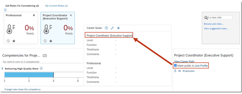 Goal in the goal section or Competency in the competency section