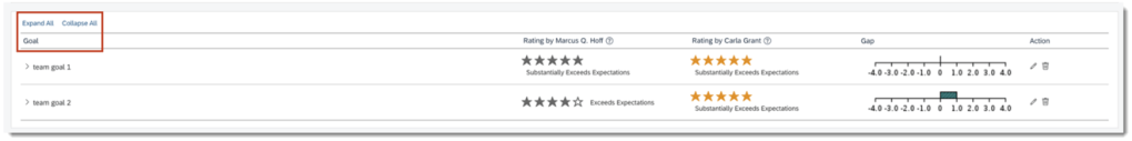 The first column header is Goal in the goal section orCompetencyin the competency section of a performance form. Previously Expand All and Collapse All were inthe first column table header