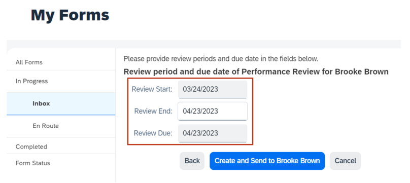 Create New Form from Performance Inbox