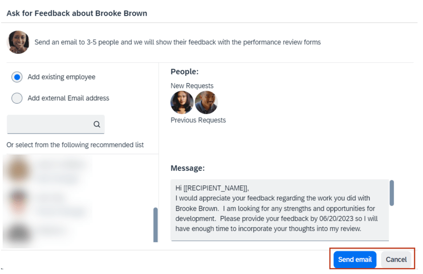 This change applies to almost all user interfaces in Performance Management, including: Add Objectives from Objective Plans dialog, Send to Next Step page, Ask for Feedback dialog, Stack Ranker page, Comment dialog, Legal Scan dialog, and Print Setup dialog.