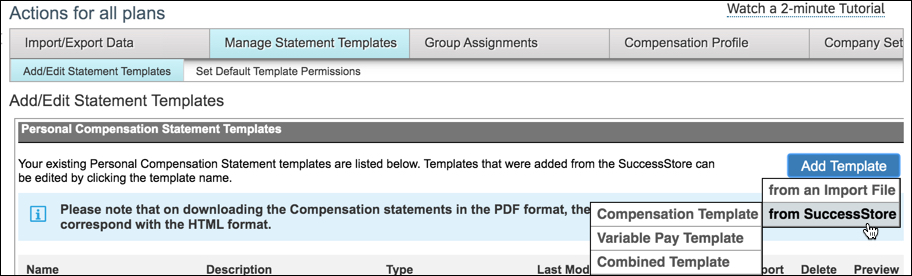 New: The system now validates the XSL file when importing templates. You can now preview sample PDFs of statement templates before generating them for employees (via a “Download Sample PDF” / “Preview Sample HTML” action).