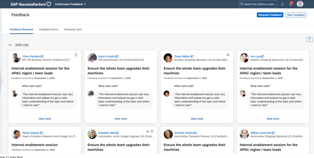 The latest version of Continuous Performance Management (CPM) was restricted in the H1 2020 release and now will be generally available. The H2 2020 release builds on the redesign of the user interface for CPM that began this year.