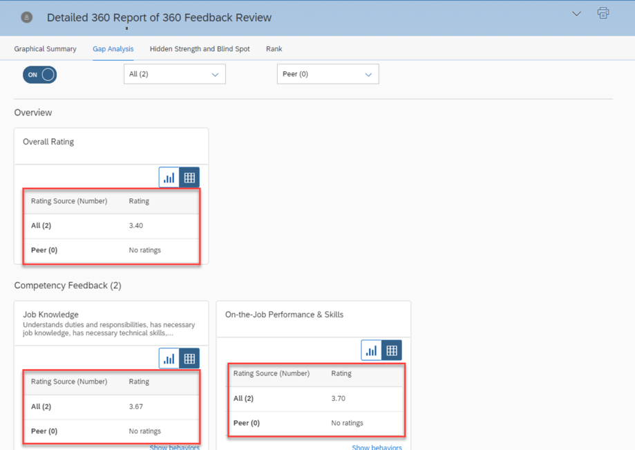 Within a 360 Executive Review and Detailed 360 Report, a user may select the table icon on a chart to see a data table. This provides text equivalents for non-text content.