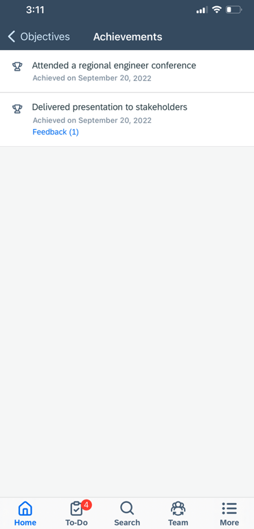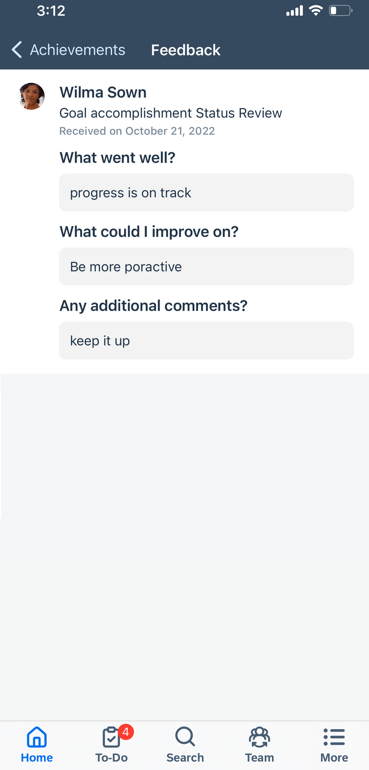 A development goal section may be added to a 360 Review form template. These enables employees the opportunity to add and edit development goals.