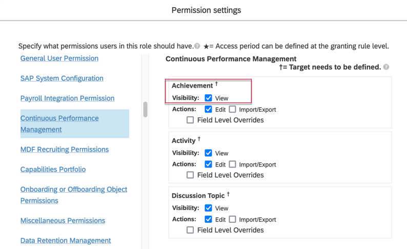 View their team’s target roles when granted the private-access permission in the Career Worksheet template.