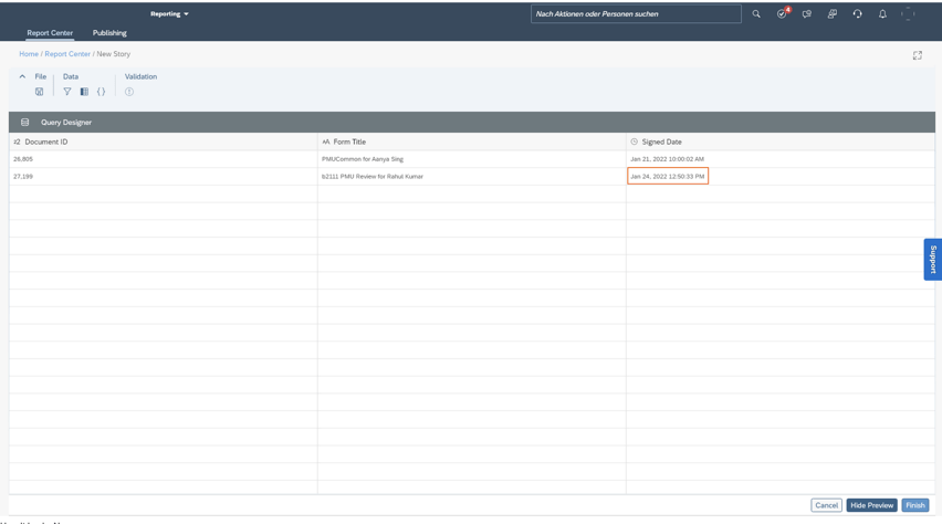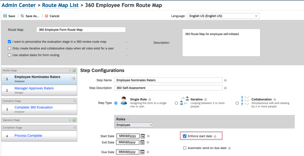 Track timely completion of reviews. You can create an ad hoc report to check what steps forms are in. If a step due date is approaching and forms are not moving, it can be a signal to send out communication to remind users to work on their forms.