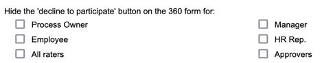 You can now hide the Nonremovable for Raters checkbox on a 360 Reviews form if it’s not needed.