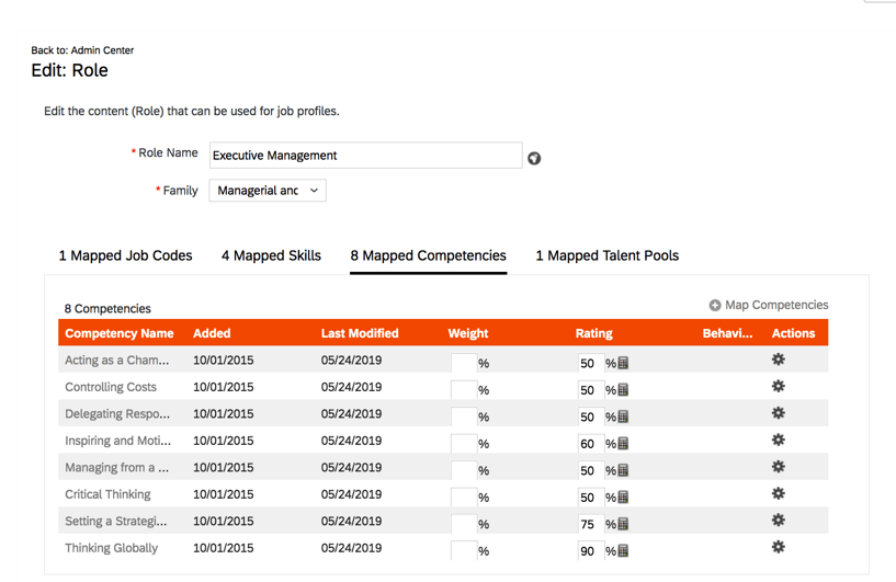 With the Suggested Successor setting enabled, weights can be configured for skills and competencies and work experience.