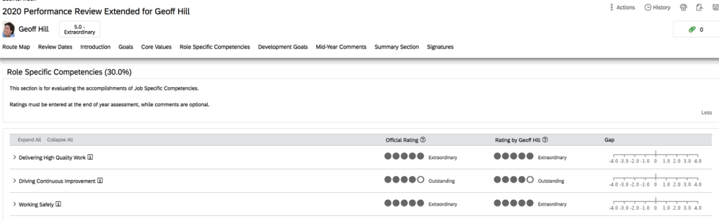 The attributes required by the position’s role are grouped into two sections: “matched” and “unmatched”. The grouping is ased on whether the suggested successor’s current ratings meet the expected ratings of these attributes.