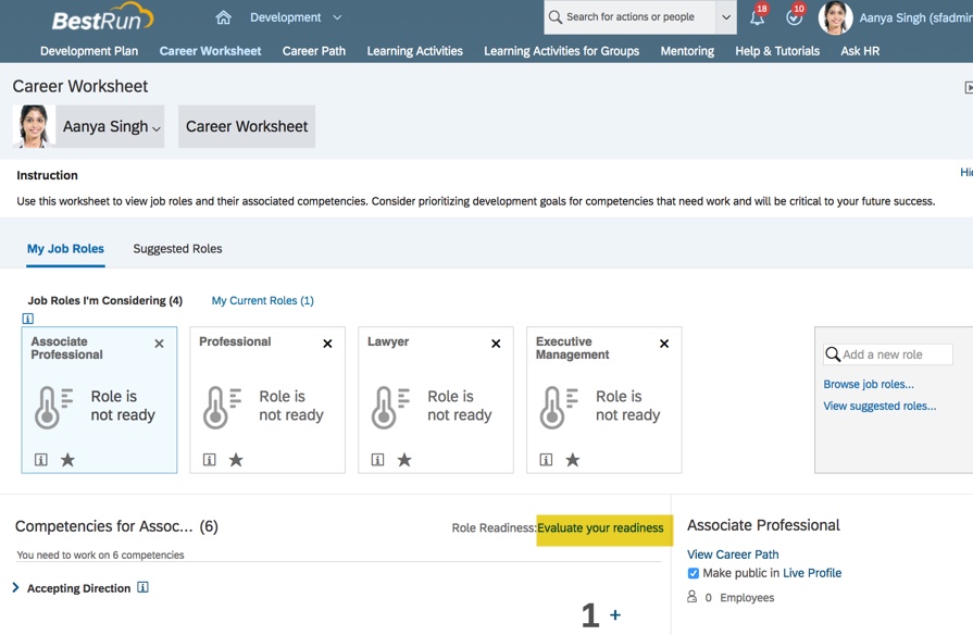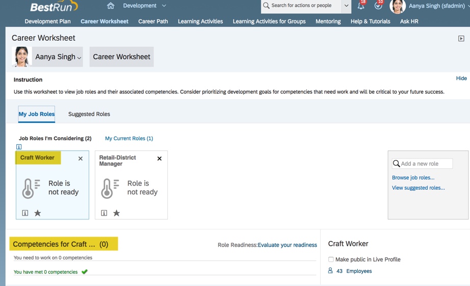 When employees open the Career Worksheet, the role readiness shown in the worksheet is always calculated based on the latest ratings.