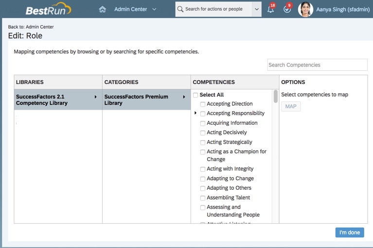You will need to identify the competencies mapped to every role and setting the expected rating for each.