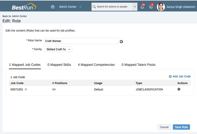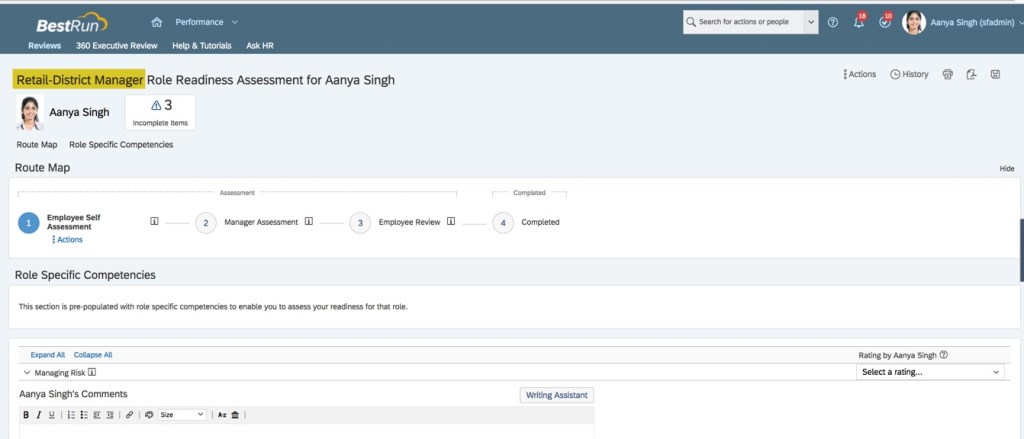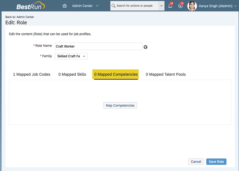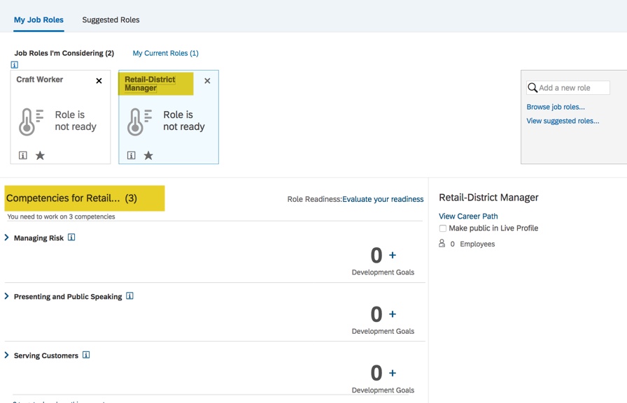 As mentioned earlier, Job profiles (with associated role) need to have mapped competencies in order for the Role Readiness Assessment form to work properly.