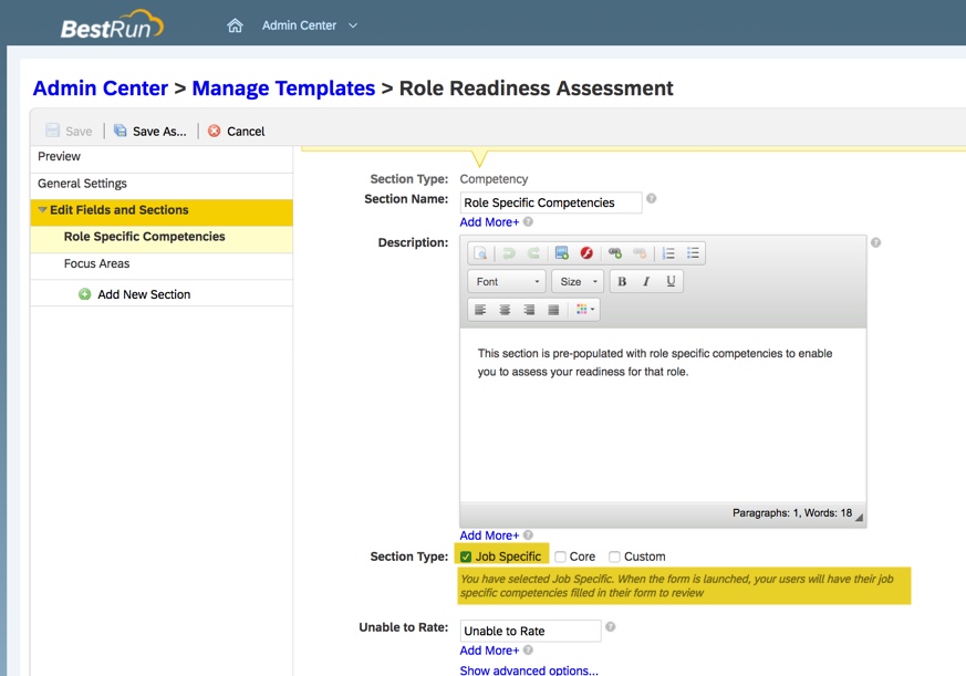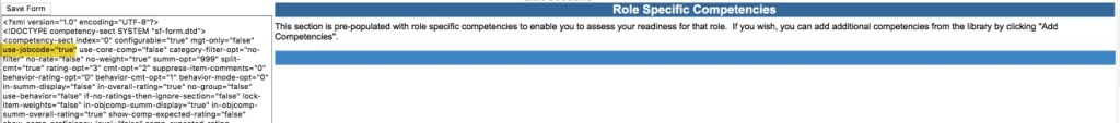 The form should be configured to auto-populate all of the competencies for the role. The form template should show that the competencies are job specific.