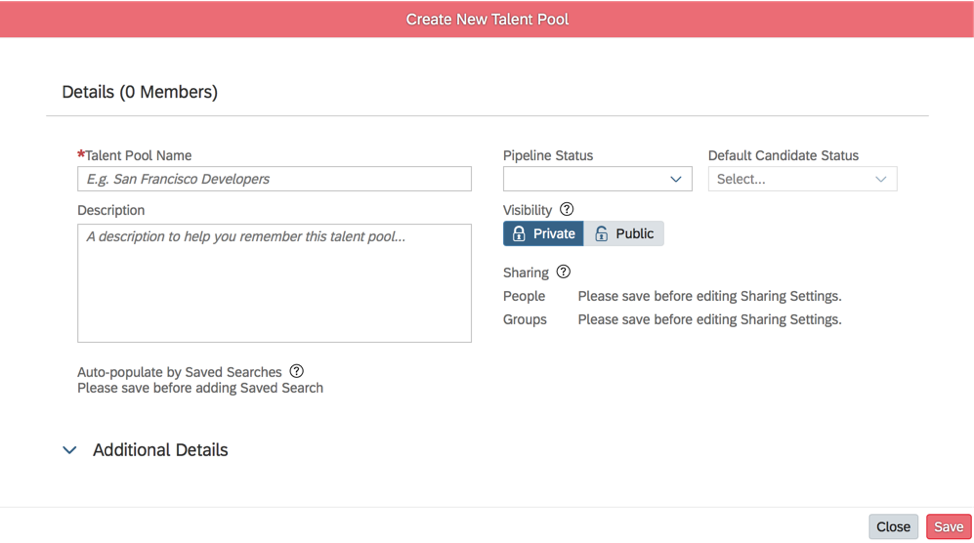Manage Qualtrics Integrations in the Admin Center now includes the Application Status Change option in the Event Name field’s dropdown list for Recruiting.