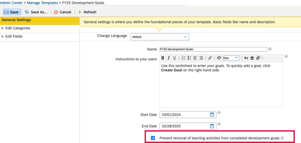 - If the template is copied from the prior year, ensure that the correct goal plan is linked to the template and any references to the prior plan year are updated to the new plan year