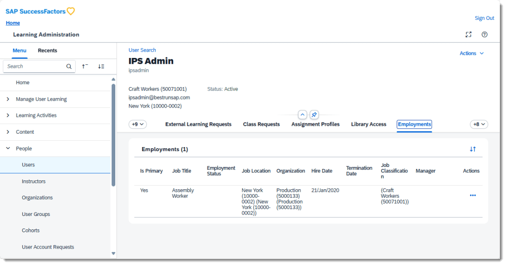 The Employments tab is now visible on the User page when using system default roles that include the new View User Employment permission. This supports upcoming person‑centric experience enhancements. (Note: System default roles are for testing only.)